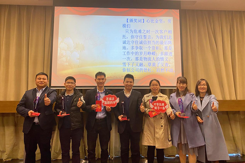 第四由刘总为年度劳动模范获得者---刘洪、温豪、丘宇玉、曾凯、张艳芳、曾林海颁奖,公司亦为他们制作了精美的奖杯和红包!劳模们只为危难之时一次客户相托,你守住誓言,为我们志诚达守住诚信担当的最后阵地。多争取一个订单,那是工作中的岁月峥嵘;多跟进一次,那是物流人的情义。雪下了又融,草黄了又青,你似公司的劲松,岿然不动。