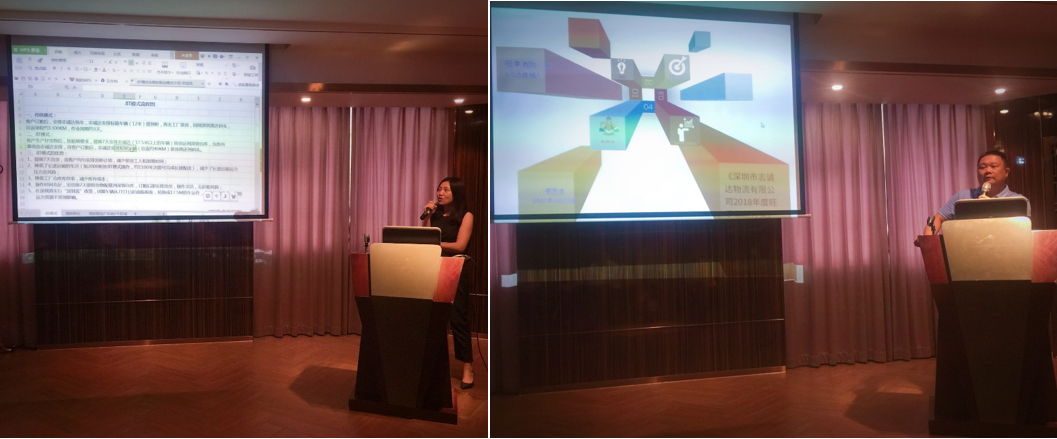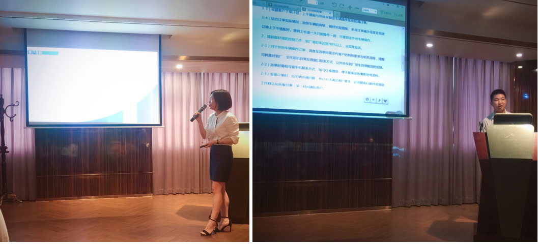 为引领创新,大会特别对今年创新的业务模式进行了推广,由客服中心经理邓佳英分别做了“JIT”、“海铁联运”等新产品的讲解。关务中心刘洪经理还结合当前通关改革及公司的关务创新平台作了全面介绍,在旺季百日会战中为顾客提供准确、快速、安全的通关服务。