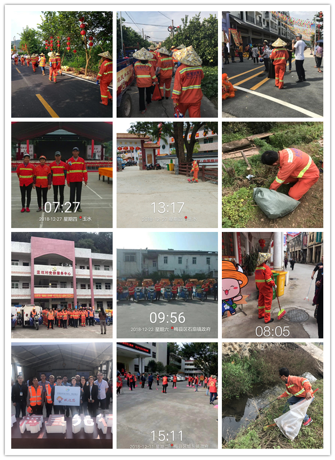 不仅如此,2018年,公司高标准、高质量完成了政府举办的各类颇具影响力的社会活动和国家盛事(例如《首届中国农民丰收节》全国六大分会场之一的梅州会场、《中国乡村复兴论坛》梅县峰会、《美丽梅州·美好家园》城乡环境大提升、《玉水厨师节》等)的环卫保卫战的艰巨任务,通过全体同仁的通力合作、精诚奉献,夺取了各大盛事环卫保卫战的全面胜利,取得了各级党委政府的一致好评与首肯!